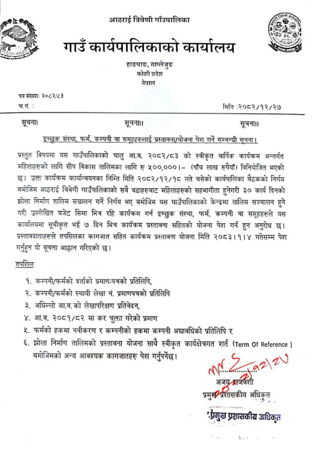 आठराई त्रिवेणी गाउँपालिका, गाउँ कार्यपालिकाको कार्यालय