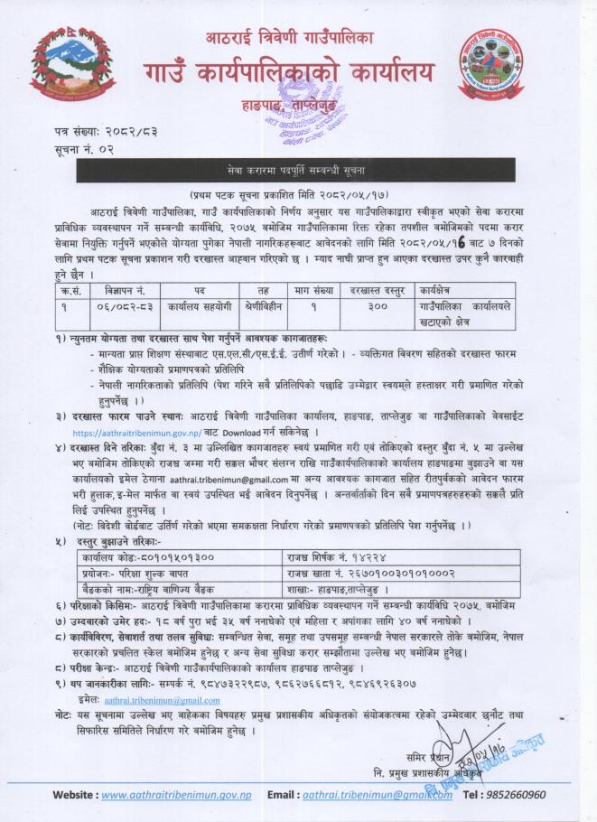 सेवा करारमा पदपूर्ति सम्बन्धी सूचना ।