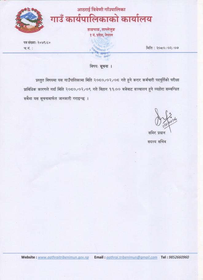परीक्षा कार्यक्रम संशोधन सम्बन्धमा ।